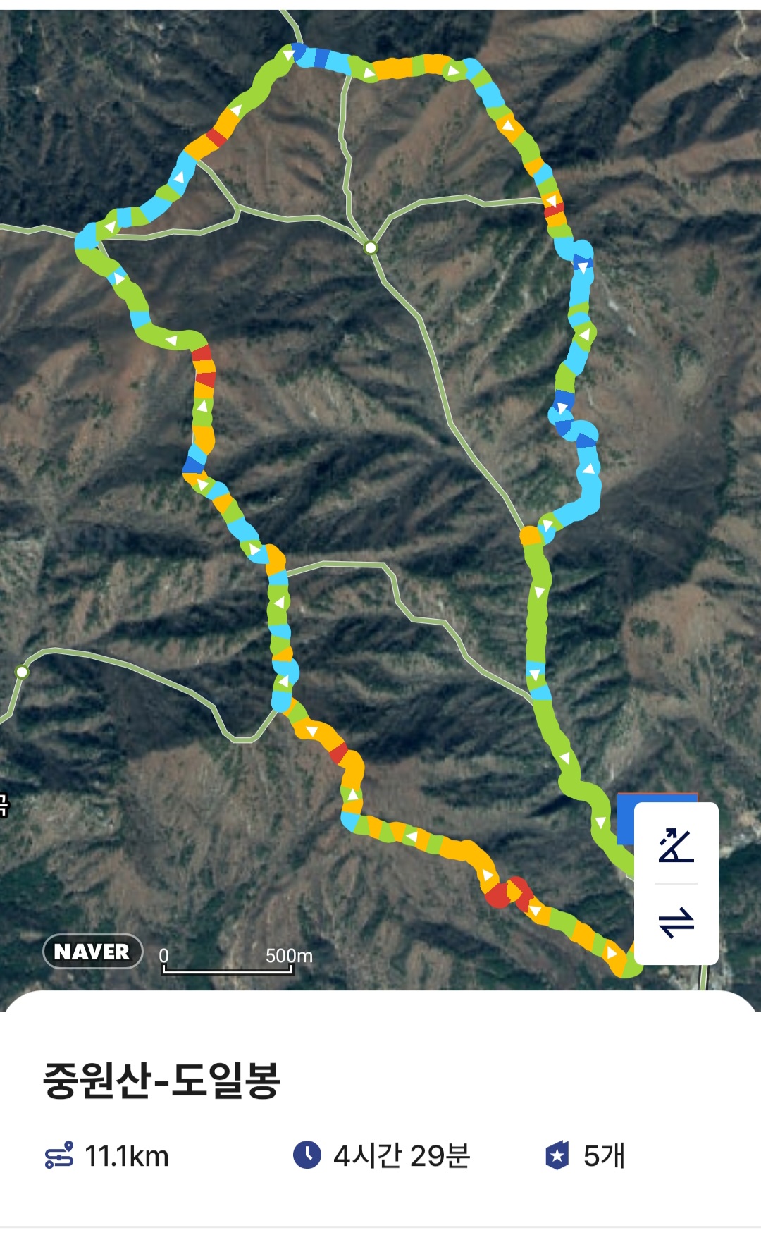 중원산에서 4.9km